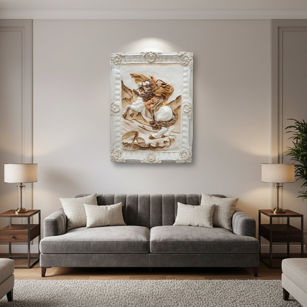 โ Luxury 3D Wall Art Frame โ Warrior on Horse Relief ๐โ๏ธ